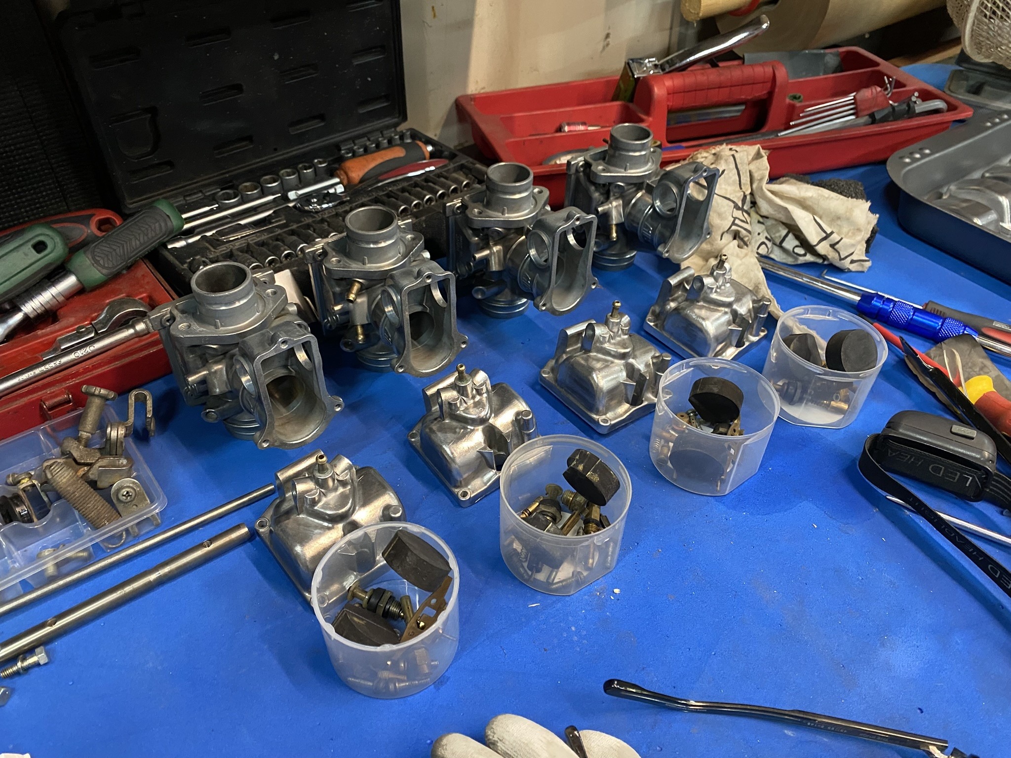 - Réfection du Système de Carburateurs : Les carburateurs ont été démontés, nettoyés et remontés puis synchronisés pour garantir un fonctionnement optimal.